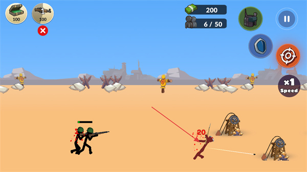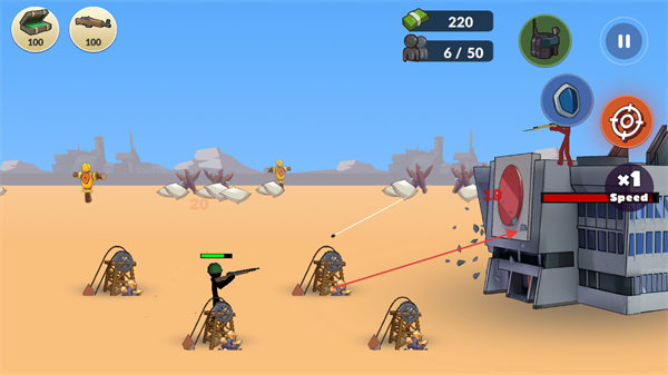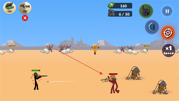 將射擊玩法與塔防元素深度結(jié)合,既需操控火柴人士兵精準射擊敵人,又要合理布置防御工事阻擋敵軍進攻,兼顧主動出擊與被動防守的策略考量。
