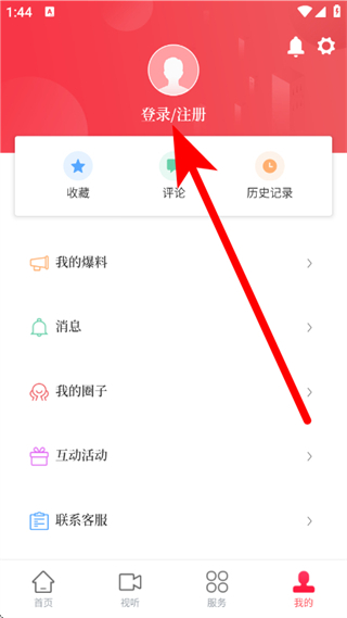 2、在我的頁面,點(diǎn)擊登錄注冊(cè),進(jìn)入登錄頁面。