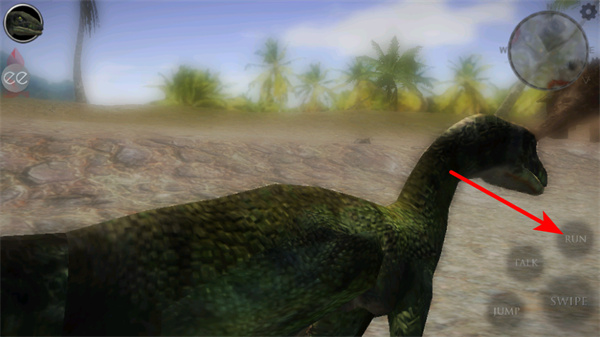 3、點擊RUN按鈕可讓恐龍奔跑,這是快速移動的核心操作,奔跑時需在遇到危險或需要趕路使用。