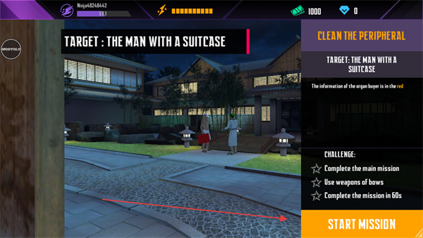 1、點擊STARTMISSION開始任務(wù),目標(biāo)是消滅攜帶手提箱的人。