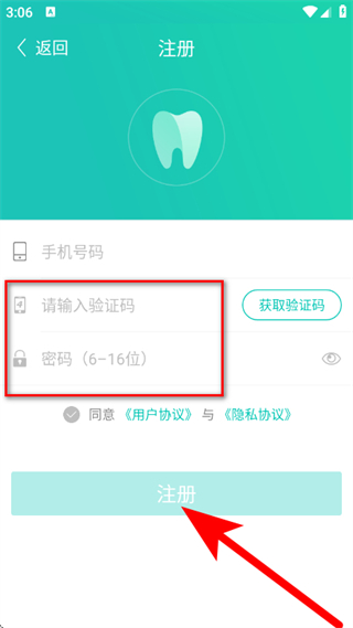 4、輸入驗(yàn)證碼、設(shè)置6-16位密碼,勾選同意后,點(diǎn)擊注冊(cè),完成操作。
