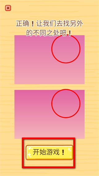 3、每找出一處不同,會有正確提示點(diǎn)擊開始游戲,繼續(xù)尋找剩余不同之處。
