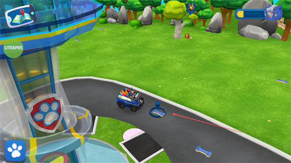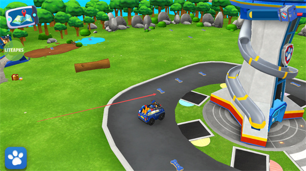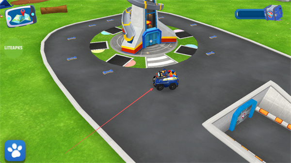 1、操控汪汪隊(duì)車輛在基地道路上行駛,熟悉移動(dòng)操作。