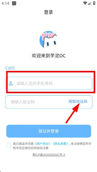 2、在登錄頁面輸入手機(jī)號(hào)碼后,點(diǎn)擊獲取驗(yàn)證碼。