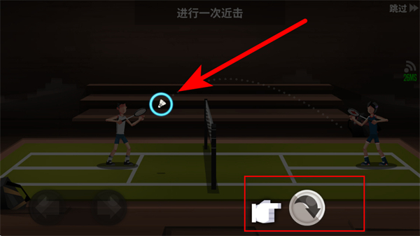 3、當(dāng)羽毛球處于可擊打范圍時(shí),點(diǎn)擊相應(yīng)的擊球按鈕如近擊按鈕,可進(jìn)行擊球操作,不同的擊球按鈕對(duì)應(yīng)不同的擊球方式。