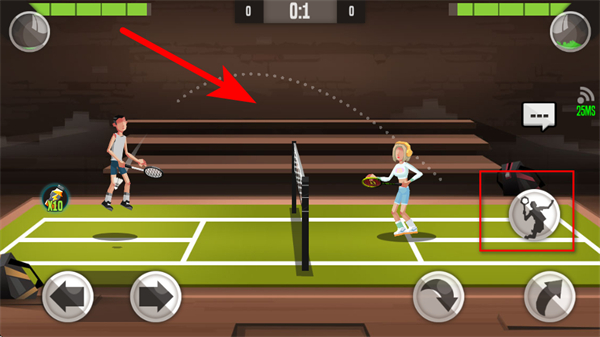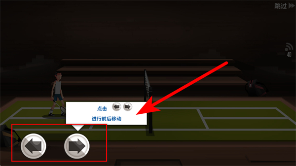 2、在游戲中,可通過(guò)點(diǎn)擊左下角的左右箭頭按鈕,控制角色進(jìn)行前后移動(dòng),調(diào)整擊球位置。