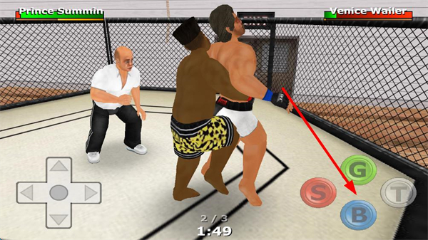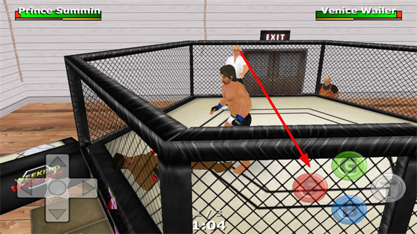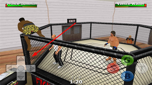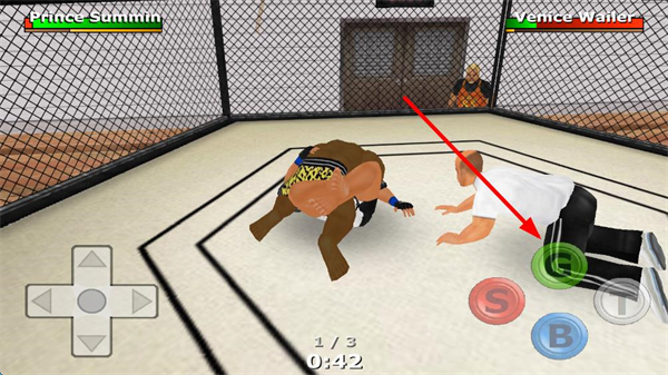 1、十字方向鍵控制摔跤手移動(dòng),可在鐵籠內(nèi)外自由行走,靠近對(duì)手、躲避攻擊或利用鐵籠邊緣調(diào)整站位。