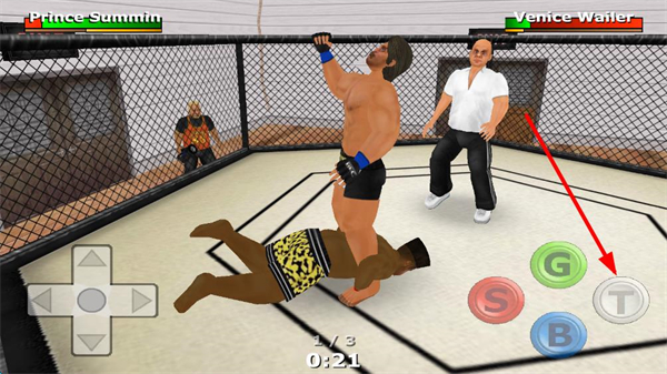 4、灰色T鍵點(diǎn)擊可發(fā)動(dòng)特殊技,在對(duì)手倒地或處于特定狀態(tài)時(shí)使用,能對(duì)其造成大量傷害,特殊技是逆轉(zhuǎn)戰(zhàn)局的關(guān)鍵。