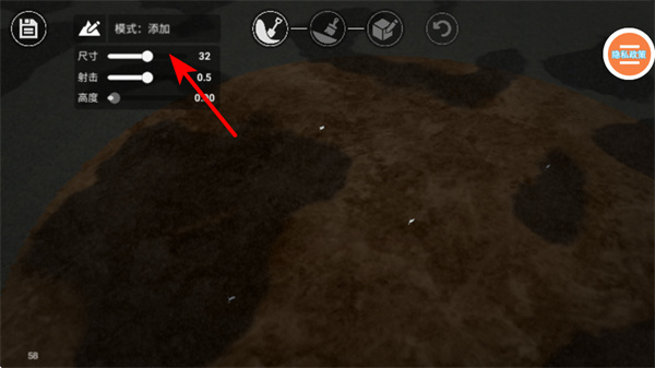 1、游戲中調(diào)整尺寸射擊等參數(shù)滑塊,可設(shè)置創(chuàng)作工具的屬性,進(jìn)行場(chǎng)景創(chuàng)作的關(guān)鍵操作,根據(jù)創(chuàng)作需求精準(zhǔn)設(shè)置。