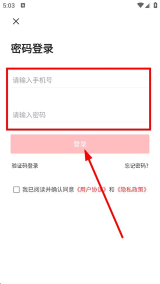 4、在密碼登錄界面,輸入手機(jī)號(hào)與密碼后點(diǎn)擊登錄,完成登錄操作。