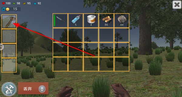 3、將制作好的石斧裝備到角色身上,提升角色的采集和戰(zhàn)斗能力,優(yōu)化荒野求生的表現(xiàn)。