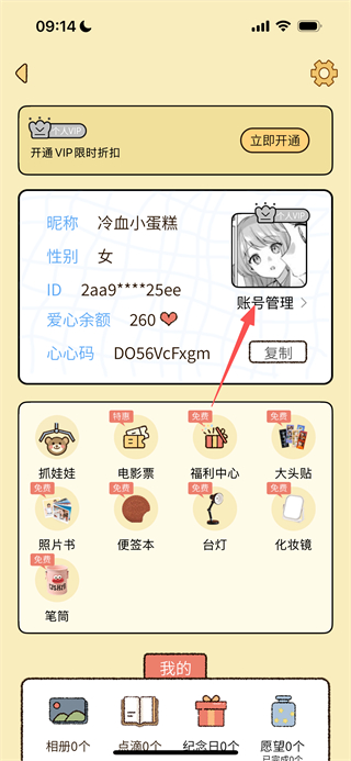 2、在個人頁面,點擊賬號管理選項,進入賬號管理頁面。