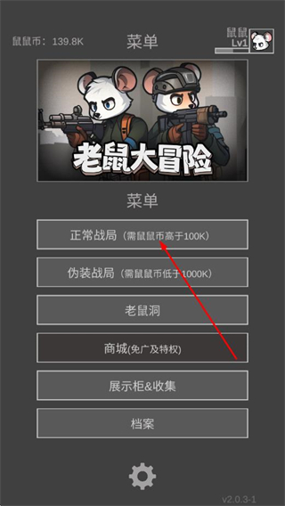 1、進(jìn)入菜單選擇戰(zhàn)局,如正常戰(zhàn)局或偽裝戰(zhàn)局,根據(jù)鼠鼠幣情況制定冒險(xiǎn)策略。