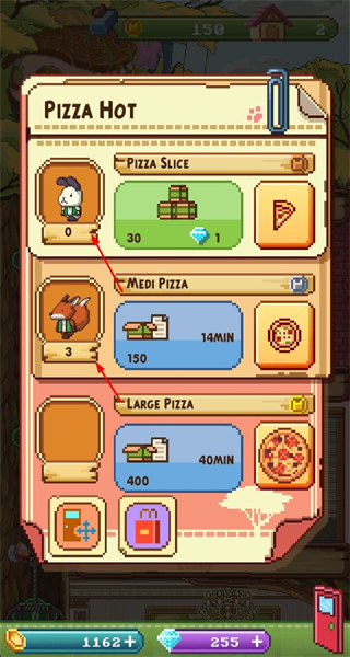 2、在Pizza Hot區(qū)域制作不同規(guī)格的披薩,消耗資源并等待制作時間,提供多樣餐品。