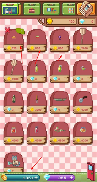 4、購買裝飾與道具,消耗金幣或鉆石提升餐廳環(huán)境與經(jīng)營能力,吸引更多顧客,增加收益。