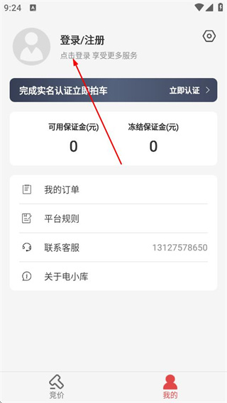 2、在個人頁面點擊登錄注冊,進入登錄頁面。
