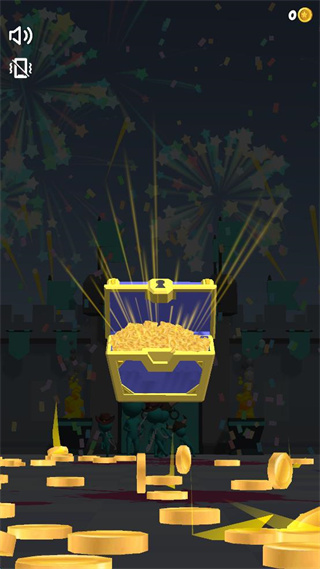 3、持續(xù)向前跑酷,擊敗沿途的粉色火柴人敵人,最終到達寶箱處,獲得金幣獎勵。