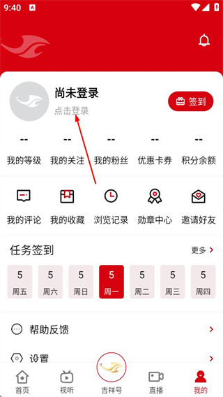 1、在吉林融媒首頁,點(diǎn)擊右下角我的選項(xiàng),進(jìn)入個(gè)人頁面。