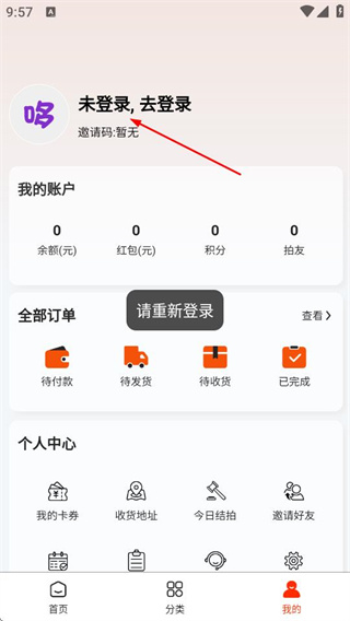 2、在個人頁面點擊去登錄,進入登錄頁面。