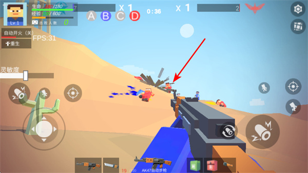 3、瞄準地面敵人進行射擊,這是消滅對手的關鍵策略,需關注敵人的移動方向以提高命中率。