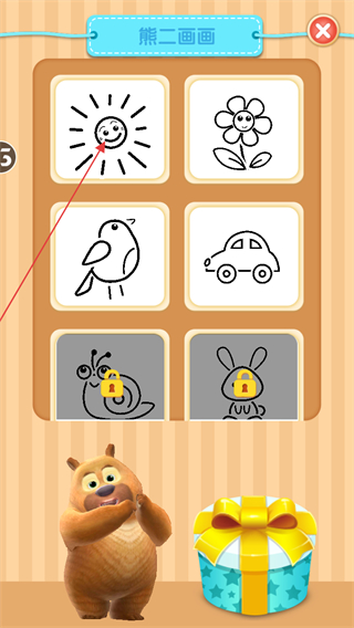 4、游戲內(nèi)還有更多的玩法等待探索,如熊熊莊園等,點(diǎn)擊畫畫按鈕可以和熊二一起畫畫獲取禮盒。