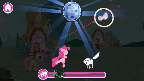 3、在迪斯科場(chǎng)景中,點(diǎn)擊音符圖標(biāo),完成互動(dòng),對(duì)抗反派。