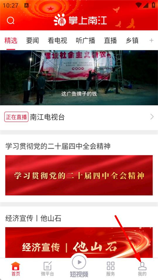 1、在掌上南江首頁,點(diǎn)擊右下角我的選項(xiàng),進(jìn)入個人頁面。