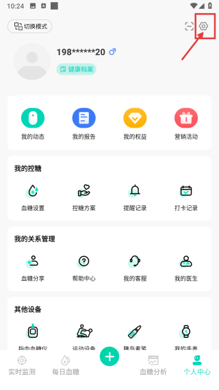 1、打開健康管理類APP,點(diǎn)擊底部個(gè)人中心選項(xiàng),進(jìn)入個(gè)人中心頁面。