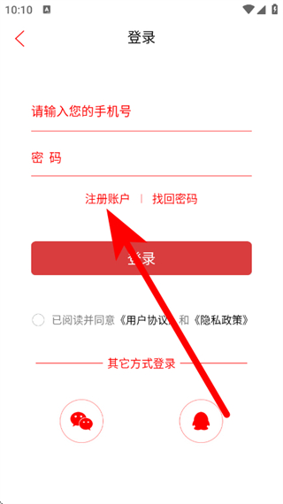 3、在登錄頁面,點擊注冊賬戶,進入注冊頁面。