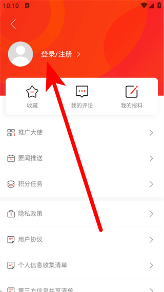 2、進入個人頁面后,點擊登錄注冊,進入登錄頁面。