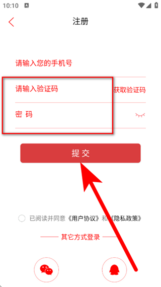 5、輸入驗證碼、設(shè)置密碼,勾選已閱讀并同意后,點擊提交,完成注冊。