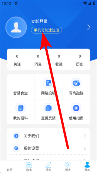 2、在個人中心頁面,點擊手機號快速注冊,進入注冊頁面。
