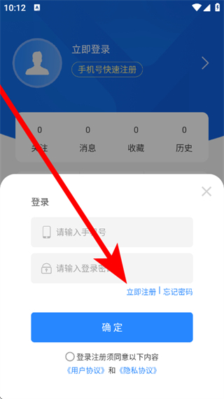 3、在登錄彈窗中,點擊立即注冊,進入快速注冊流程。
