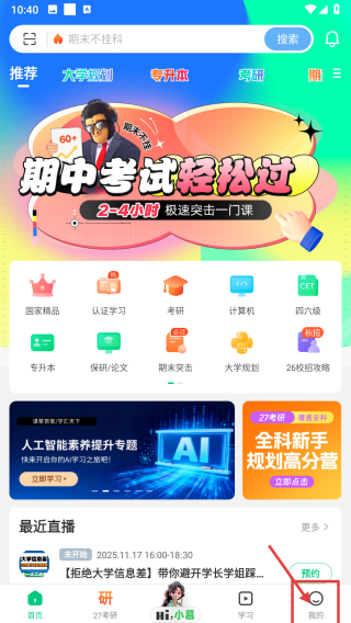 1、打開學(xué)習(xí)類APP,點(diǎn)擊底部我的選項(xiàng),進(jìn)入個(gè)人中心頁面。