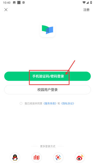 3、在登錄方式選擇頁面,點(diǎn)擊手機(jī)驗(yàn)證碼/密碼登錄選項(xiàng),進(jìn)入手機(jī)號(hào)登錄頁面。
