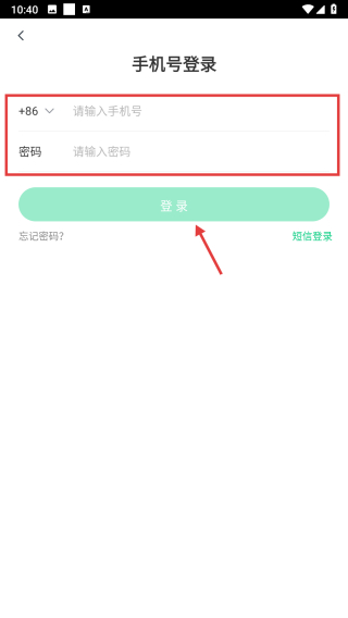 4、在手機(jī)號(hào)登錄頁面,輸入手機(jī)號(hào)和密碼后,點(diǎn)擊登錄按鈕,完成賬號(hào)登錄操作。