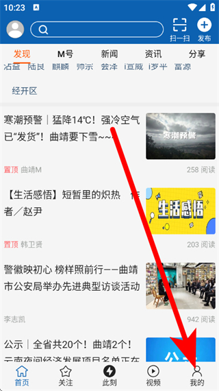 1、打開(kāi)曲靖m,點(diǎn)擊底部我的,進(jìn)入用戶中心頁(yè)面。