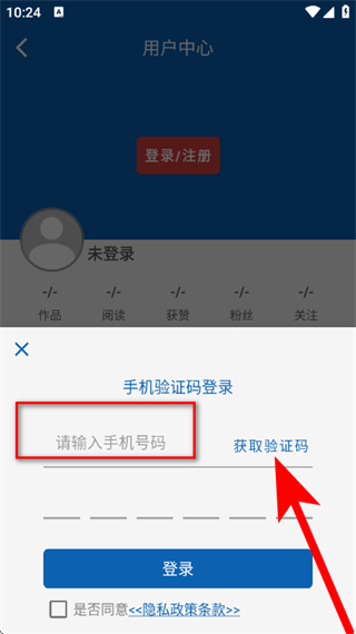 3、在注冊(cè)頁(yè)面,輸入手機(jī)號(hào)碼,點(diǎn)擊獲取驗(yàn)證碼。