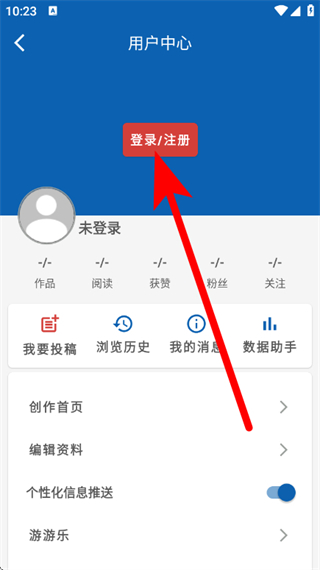 2、在用戶中心頁(yè)面,點(diǎn)擊登錄注冊(cè),進(jìn)入注冊(cè)頁(yè)面。