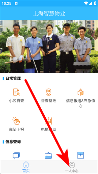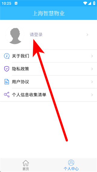 1、打開上海智慧物業(yè),點(diǎn)擊底部個(gè)人中心,進(jìn)入個(gè)人中心頁(yè)面。