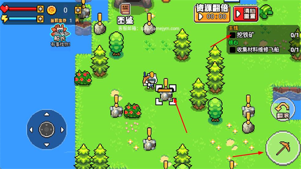 1、在場(chǎng)景中采集資源,使用工具挖掘資源,完成主線任務(wù),積累資源與進(jìn)度。
