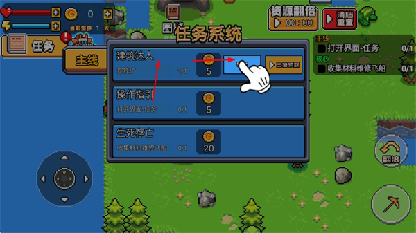 荒島冒險(xiǎn)求生無(wú)限資源是一款以像素藝術(shù)風(fēng)格打造的模擬生存手游,玩家扮演因飛船意外墜落荒島的幸存者,面對(duì)未知挑戰(zhàn)與危險(xiǎn)開(kāi)啟驚心動(dòng)魄的求生之旅,在荒無(wú)人煙的小島上,需憑借智慧和雙手收集資源、建造避難所、鍛造武器,克服惡劣環(huán)境與潛在威脅,逐步推進(jìn)修復(fù)飛船的計(jì)劃,努力逃離這片孤寂之地。