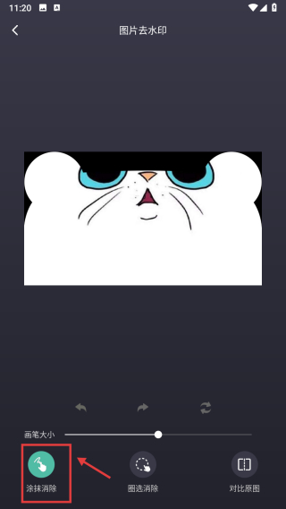 3、在圖片去水印編輯頁(yè)面,選擇涂抹消除工具,對(duì)圖片中需要擦除的物體區(qū)域進(jìn)行涂抹操作。