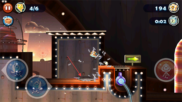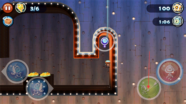2、點(diǎn)擊右下角綠色按鈕,利用關(guān)卡內(nèi)的各種設(shè)施完成冒險(xiǎn)旅程。