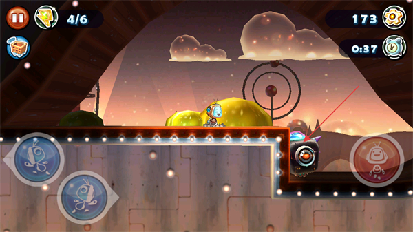 3、冒險(xiǎn)的途中會(huì)遇到黑色的機(jī)械怪物,需要小心躲避它不要被碰到。