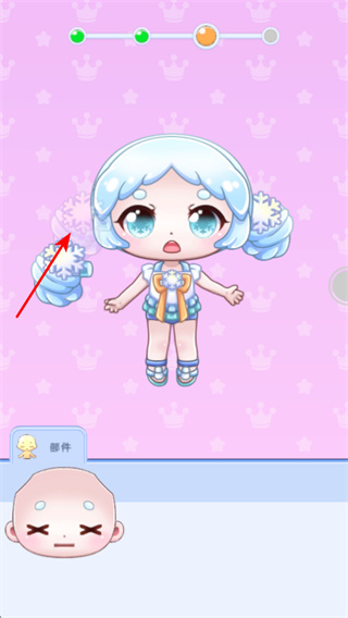 3、選擇發(fā)型部件,如帶有雪花裝飾的發(fā)型,這是完善角色外觀的關(guān)鍵步驟,選擇時需根據(jù)整體風(fēng)格進(jìn)行搭配。