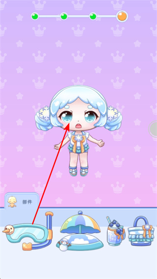 4、為角色搭配配飾,如泳鏡、遮陽傘等,這是豐富角色形象的關(guān)鍵策略,搭配時需結(jié)合場景主題進(jìn)行選擇。