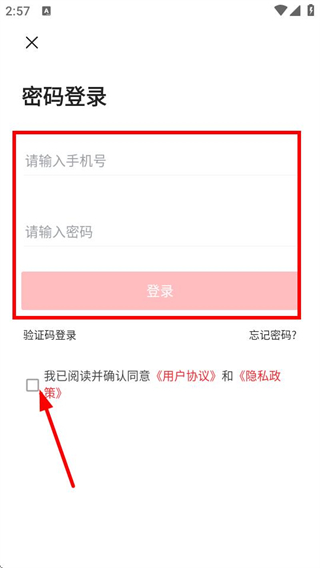 4、在密碼登錄頁(yè)面,輸入信息,勾選協(xié)議后點(diǎn)擊登錄,完成賬號(hào)登錄。
