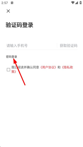 3、在登錄頁(yè)面,點(diǎn)擊密碼登錄選項(xiàng),進(jìn)入密碼登錄頁(yè)面。