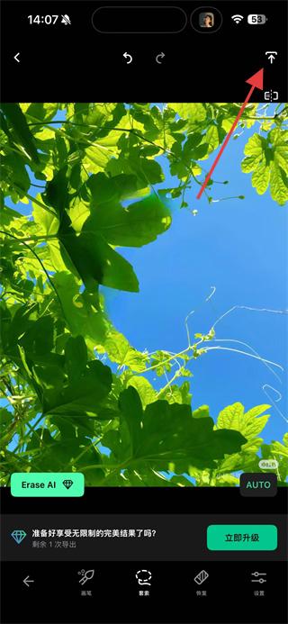 4.編輯完成后,可使用畫(huà)筆、橡皮等工具進(jìn)一步調(diào)整,最后點(diǎn)擊右上角導(dǎo)出按鈕保存或分享圖片。